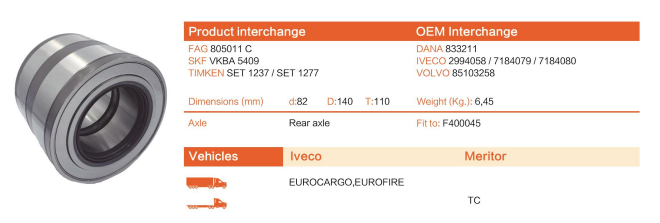 DANA 833211IVECO 2994058/7184079/7184080VOLVO 85103258 |